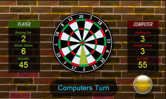 ダーツシューティングは、トップ画面で「PLAY」と書かれたボタンをタップするとゲームスタートです。画面の中央にはダーツの的が置かれており、指示された部分が黄色に光っているので、その部分目がけてダーツを投げましょう。画面の左下にあるダーツを指でスライドさせ、投げ始める位置を決めます。位置が決まったら、同じく画面右下にある「POWER」と書かれた丸いボタンを長押しします。するとパワーゲージが表示されるので、適当なタイミングで指を離すとダーツが弧を描くように飛んでいきます。